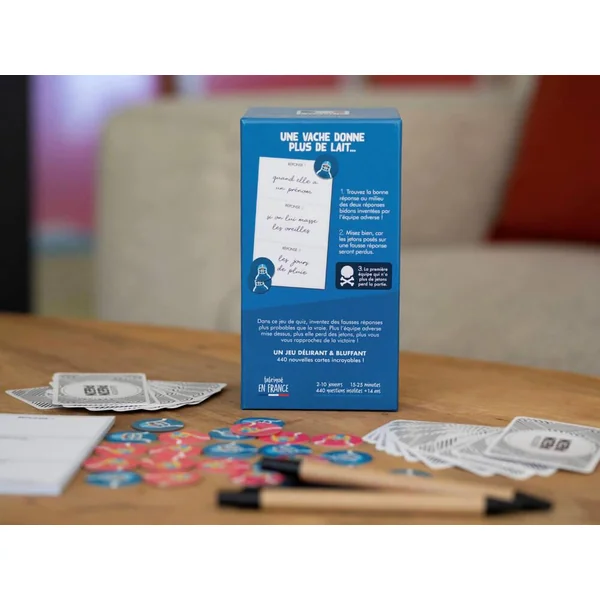 Deux équipes se forment pour se poser des questions insolites. Lorsqu’une équipe questionne, elle essaie de piéger l’autre en lui proposant trois choix de réponse dont une seule est correcte. Plus, l’équipe adverse mise sur les fausses réponses, plus elle perd ses jetons, et vous gagnez.