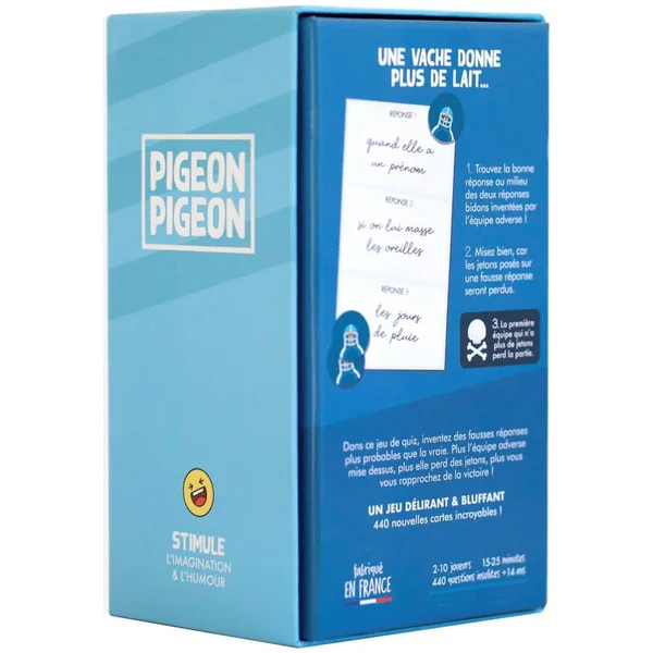 C’est le retour du bluff, pigeonnez votre adversaire en inventant des mensonges hilarants avec ce nouveau jeu de société. Avec Pigeon Pigeon 2, c’est rires et amusements garantis.