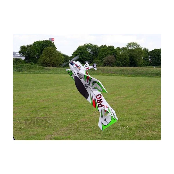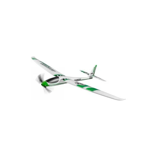 Modèle en ELAPOR®monté à 100%, avec moteur PERMAX BL-O 2812-1100, variateur MULTIcont BL-20 SD, hélice à pales repliables 7×4″ montée, 2 servos Nano-S, récepteur RX-5 M-LINK ID 10, accu de propulsion Li-BATT FX 3/1-950, décoration posée (verte) et notice détaillée.