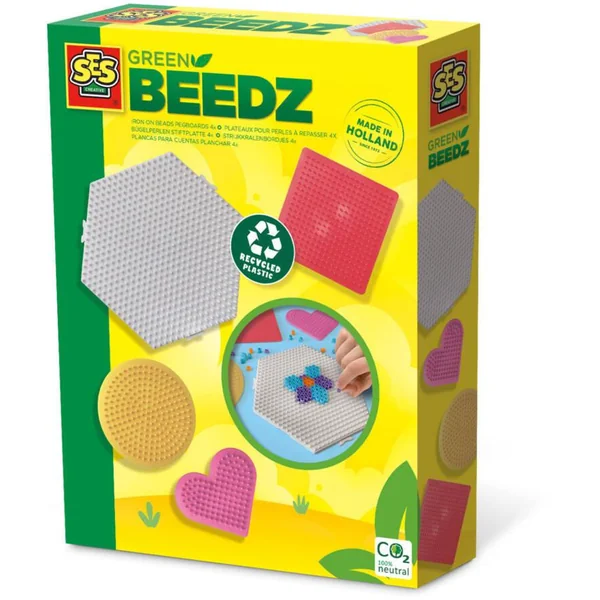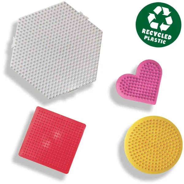 Repasse des plaques de perles de quatre formes différentes. Laisse libre cours à ton imagination et crée différents motifs et œuvres d’art avec des perles à repasser. Ces plaques font partie de la collection Green Beedz de SES Creative. Fabriquées en polystyrène recyclé à partir de vieilles portes de réfrigérateur, ces plaques sont une option très respectueuse de l’environnement.