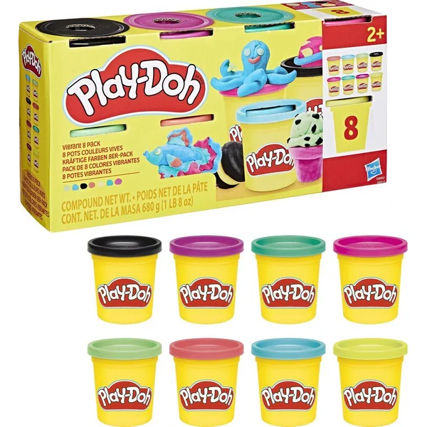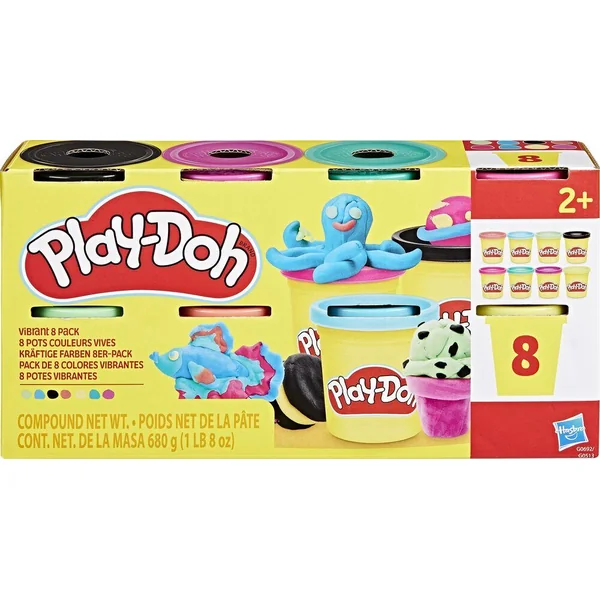 Les idées imaginatives des enfants prennent vie avec ces 8 couleurs vives Play-Doh ! Ce pack Play-Doh est idéal pour les activités créatives des enfants, dès 2 ans. Les enfants peuvent stimuler leur imagination et leurs sens avec les 8 couleurs dans des pots de 85 g. Ces pots de pâte colorée peuvent être utilisés comme jouets sensoriels, fournitures pour loisirs créatifs ou recharges pour coffret Play-Doh (vendu séparément). PLAY-DOH, HASBRO et toutes les marques et logos associés sont des marques de commerce de Hasbro, Inc.