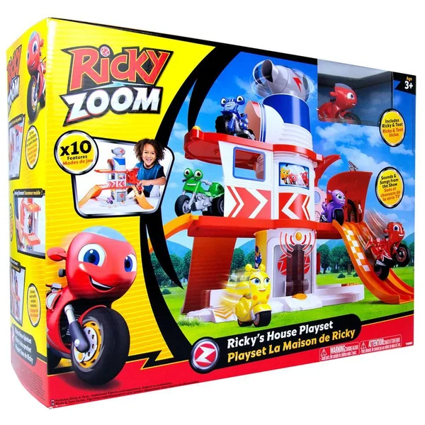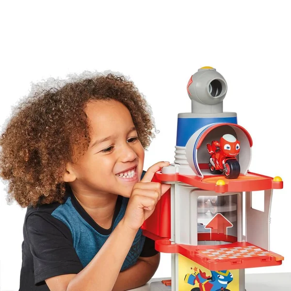 3 étages de jeu et 10 fonctions : ascenseur et télescope, 3 rampes de descente, 1 capsule de secours avec accessoires… 1 figurine Ricky à roues libres incluse. Effets sonores.