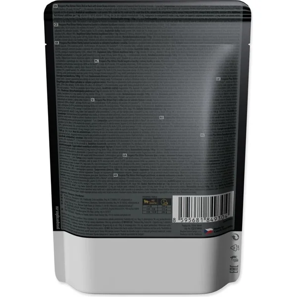 Aliment complet pour chatons âgés de 4 semaines à 1 an sous forme de sachet avec du canard et des haricots verts.