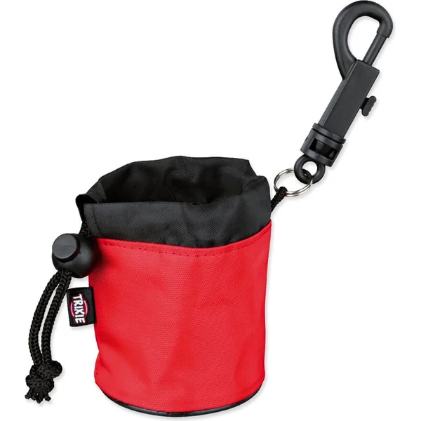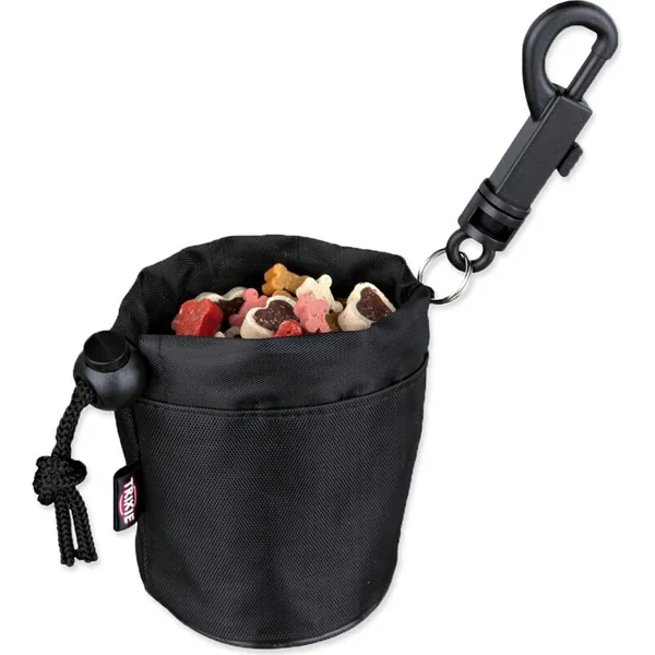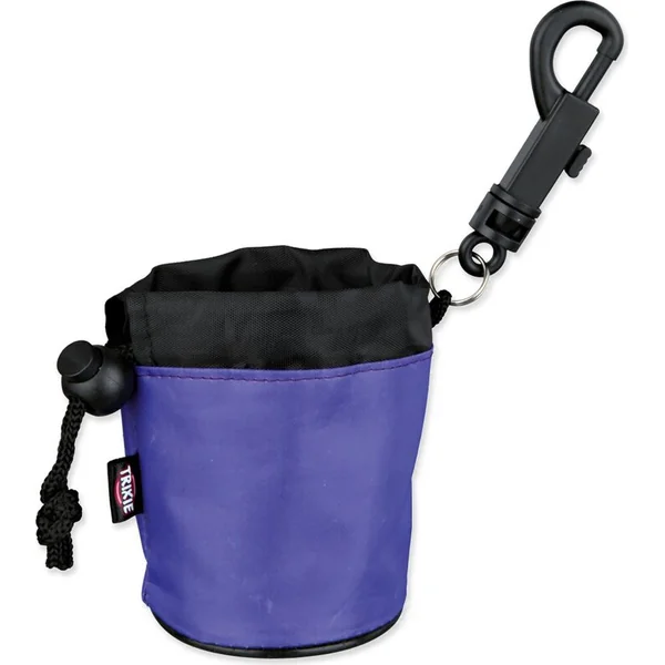Il est équipé d’un mousqueton pour un attachement facile à la laisse. Le distributeur de friandises peut être fermé avec un cordon.