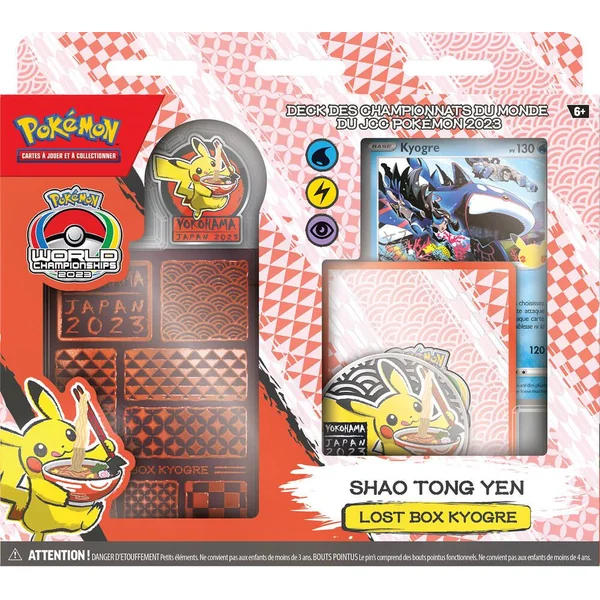 Prenez en main un deck des Championnats du Monde et jouez comme un champion ! Choisissez l’un des quatre decks puissants, chacun étant une réplique exacte d’un deck d’un concurrent aux Championnats du Monde 2023 du Jeu de Cartes à Collectionner Pokémon. 1) deck de 60 cartes du Champion de 2023- Deck box?(1) livret de règles du jeu?(1) Pin’s?(1) Piece ?(1) Poster/tapis de jeu – Durée 15 à 30 minutes. Nombre de joueurs 1-2.