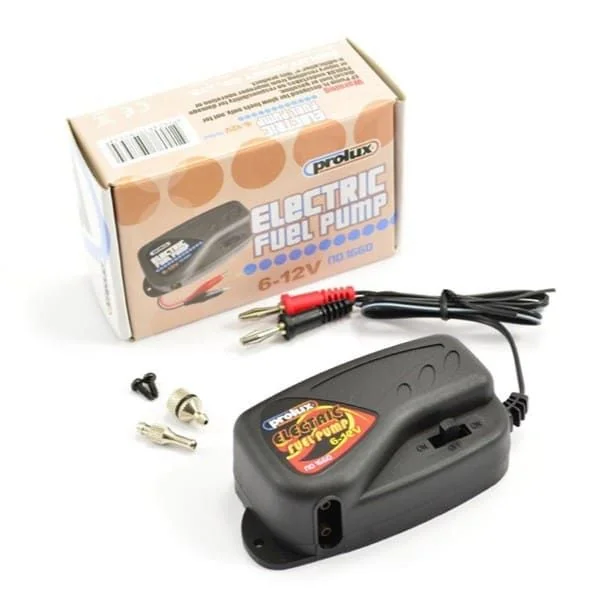 Pompe à carburant électrique 6-12V Prolux – PX1660La Pompe à carburant électrique 6-12V de Prolux garantit un ravitaillement rapide, fiable et propre pour les moteurs glow. Sa conception robuste et optimisée permet une manipulation fluide du carburant, avec une excellente résistance aux fuites et une durabilité accrue. Remplissage précis et sans fuiteGrâce à sa transmission par engrenages ultra-efficace, cette pompe assure un remplissage et un soutirage rapides, sans fuites, même après de nombreuses utilisations. Son interrupteur trois positions est équipé d’une sécurité intégrée, garantissant une utilisation fiable lors de chaque session de ravitaillement. Conception robuste et intelligenteLa Pompe à carburant Prolux 6-12V est moulée en nylon renforcé de fibres de verre, spécialement sélectionné pour sa résistance aux carburants glow. Ce matériau assure une excellente tenue dans le temps, même en environnement exigeant. Elle fonctionne exclusivement avec du carburant incandescent (glow) et n’est pas compatible avec l’essence ou le diesel. Caractéristiques principales de la pompe Prolux