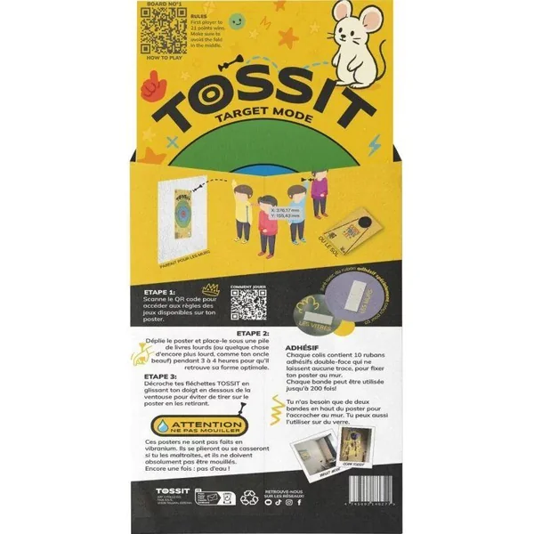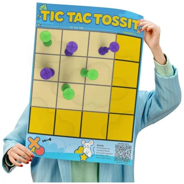 Le Poster TOSSIT est l’alternative légère, futée et ultra-fun au plateau en silicone. Que tu veuilles tester ta précision dans un défi de cible ou défier tes amis dans une partie géante de morpion, ce poster a tout prévu – deux jeux exclusifs en un.