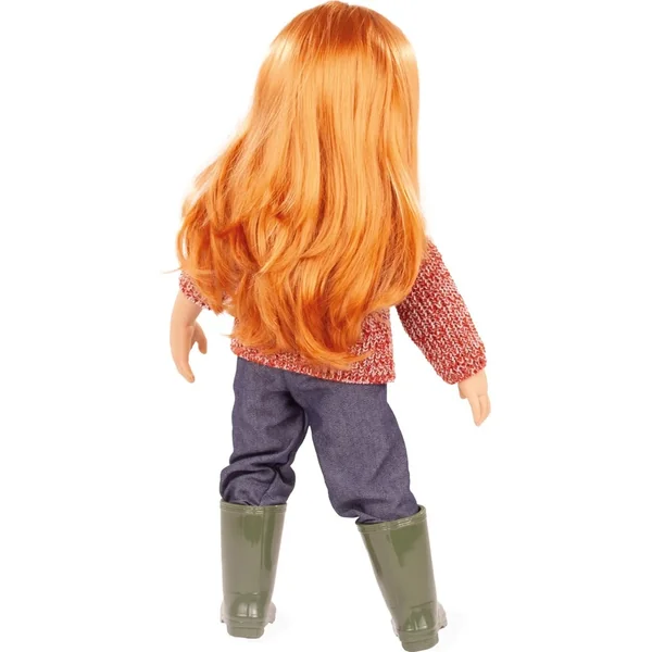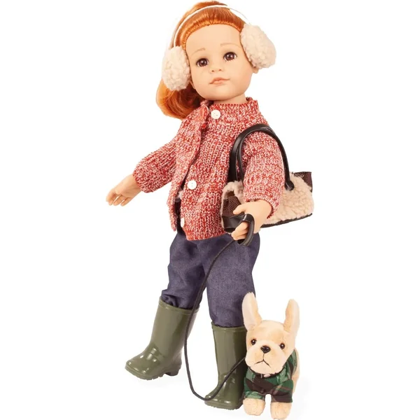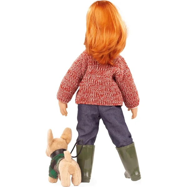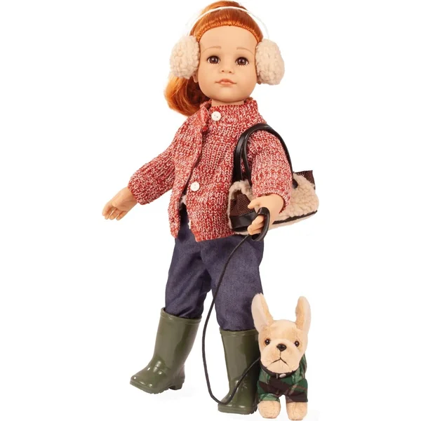 Hannah et son chien séduisent par leur apparence naturelle et charmante : Ses longs cheveux roux incitent les enfants à les laver et à les coiffer, tandis que son visage affectueusement conçu et sa tenue d’hiver confortable – qui comprend un manteau en tricot chiné, un jean, des bottes en caoutchouc et des protège-oreilles en peluche – stimulent la créativité pendant le jeu.