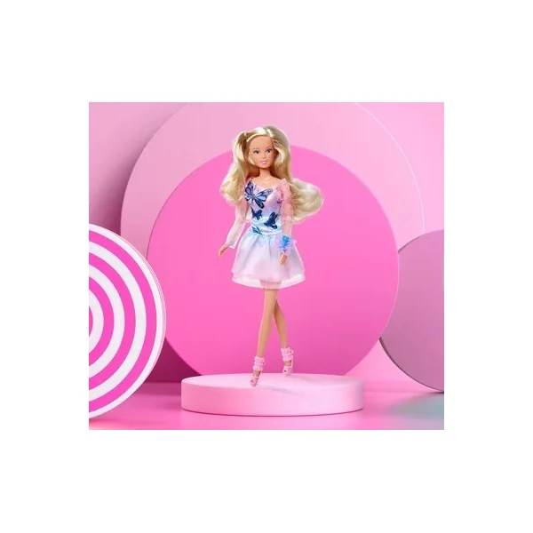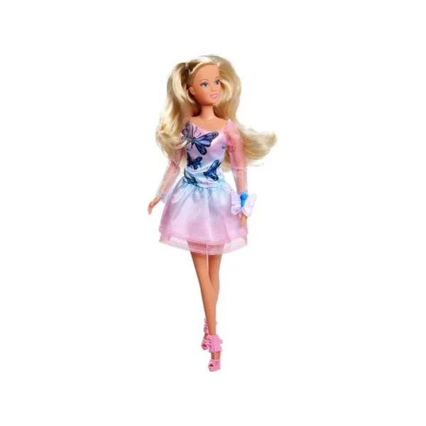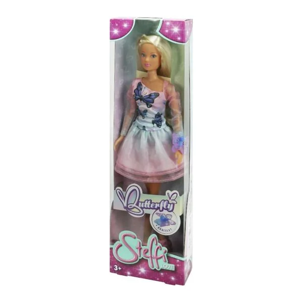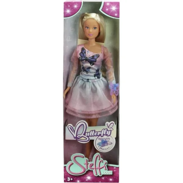 Poupée de Steffi LOVE avec de belles robes à motifs de papillons et un bracelet assorti. Idéal pour de nombreuses heures de jeu imaginatif.