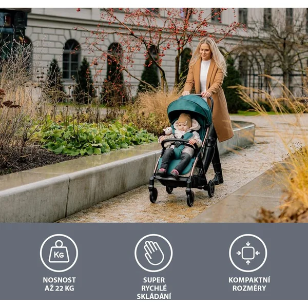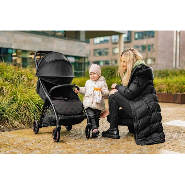 Châssis léger mais robuste, dimensions compactes et pliage si simple que vous pouvez le faire d’une seule main. La poussette Quiq 2 sera aimée de tous les parents qui aiment voyager et souhaitent rendre chaque trajet agréable. Les roues en caoutchouc avec suspension peuvent gérer les pavés en ville ainsi que les terrains irréguliers lors des promenades en pleine nature. Grâce à ses dimensions compactes, elle prend un minimum de place et se tient debout toute seule une fois pliée. Le canopy extensible avec fenêtres de ventilation assure une protection fiable contre le soleil et une bonne aération. Les poignées sont matelassées, ce qui souligne le design simple de la poussette. La Quiq 2 transportera votre petit voyageur jusqu’à 22 kg.