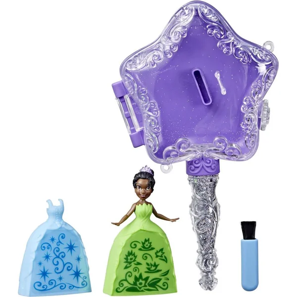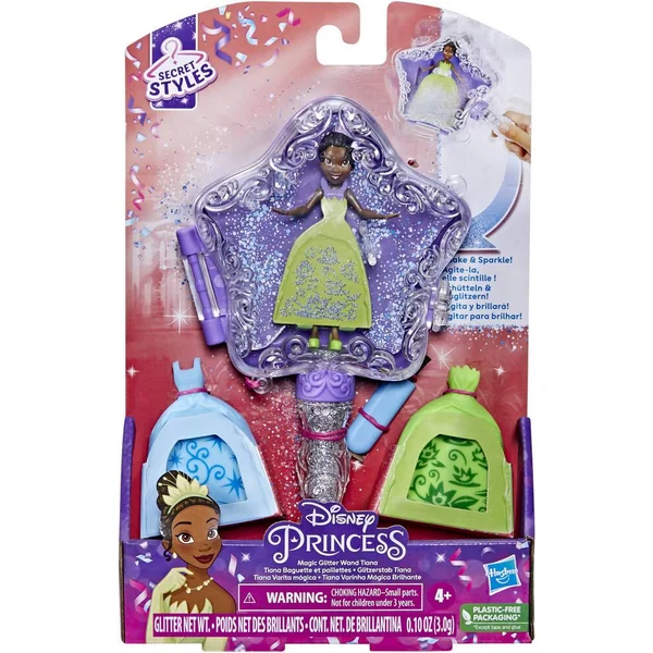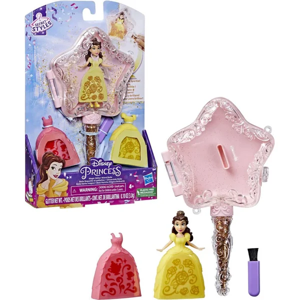 Baguette magique de 19 cm avec une princesse Belle ou Raiponce ! Grâce aux paillettes on peut décorer les jupes des princesses en les mettant dans la baguette magique qui s’ouvre et se ferme.