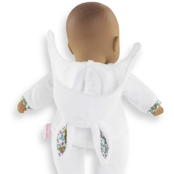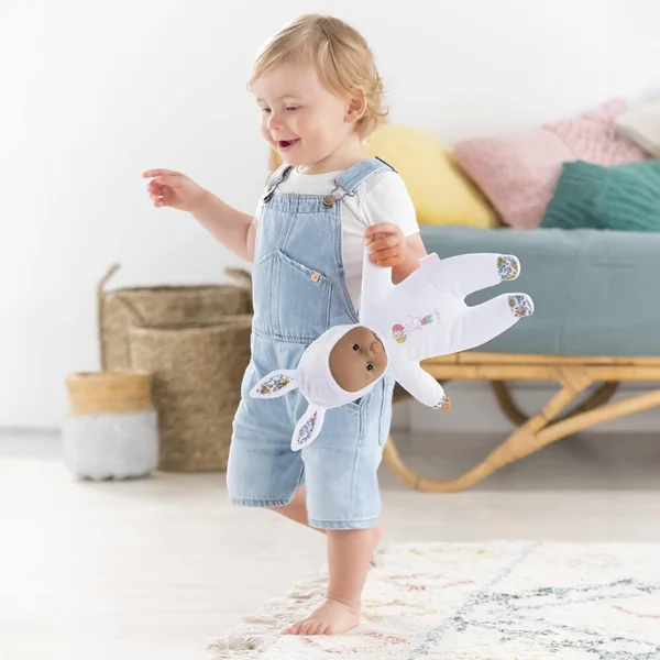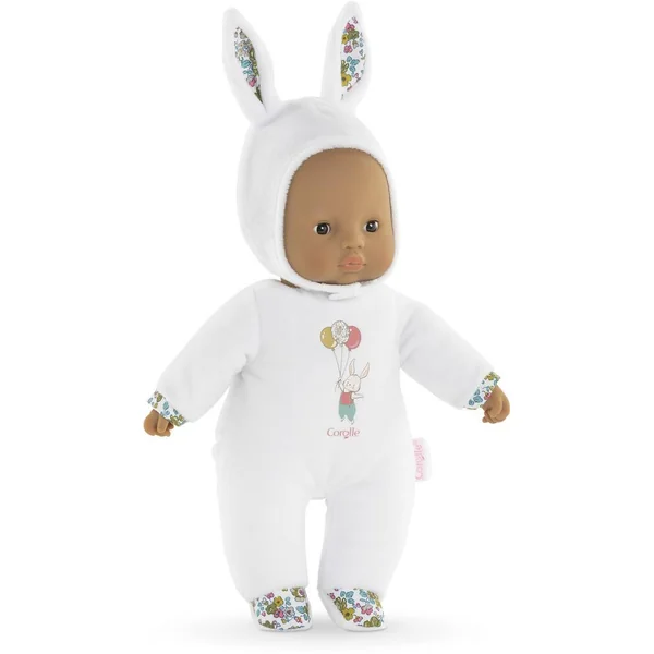 Pti’Cœur Lapin Blanc est le cadeau idéal pour le premier anniversaire et/ ou le premier noël ! Ce petit poupon de 30cm a la taille parfaitement adaptée aux petits bras et mains de l’enfant pour être attrapé et manipulé très facilement. Son corps souple sans billes est léger et facile à saisir. Petit poupon à la peau mate : sa tête et ses mains, à la délicate senteur de vanille, sont en vinyle doux au toucher. Sa toile de corps est douce pour l’éveil des sens. Elle est non amovible. Sa capuche est munie de deux petites oreilles de lapereau toutes mignonnes. Elle peut être retirée mais reste astucieusement attachée grâce à une petite languette située derrière la tête pour éviter de l’égarer. Pti’Cœur Lapin Blanc possède une étiquette pour écrire le prénom de l’enfant, bien pratique en cas de perte ! Yeux noirs fixes. Lavable à la main en surface. mon doudou Corolle : Toi et moi, pour toujours.