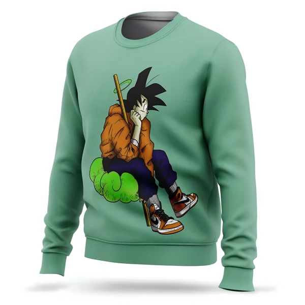 Ce pull revisite l’image de Son Goku en le présentant sous un nouveau jour. Loin des arènes de tournois et des combats contre des adversaires redoutables, on retrouve ici un Goku serein, profitant d’un instant de calme sur son emblématique Kinto-Un. Son style vestimentaire, avec un sweat à capuche et des baskets tendance, apporte une dimension streetwear inattendue à ce personnage emblématique. C’est une manière originale d’afficher votre passion pour Dragon Ball Z tout en restant à la pointe de la mode.