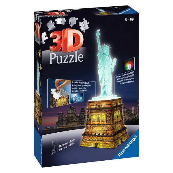 Découvrez les buildings 3D® illuminés de Ravensburger ! Construisez de superbes monuments avec des pièces incurvées, pliables ou plates. La qualité de découpe des pièces assure une parfaite stabilité, le tout sans colle.