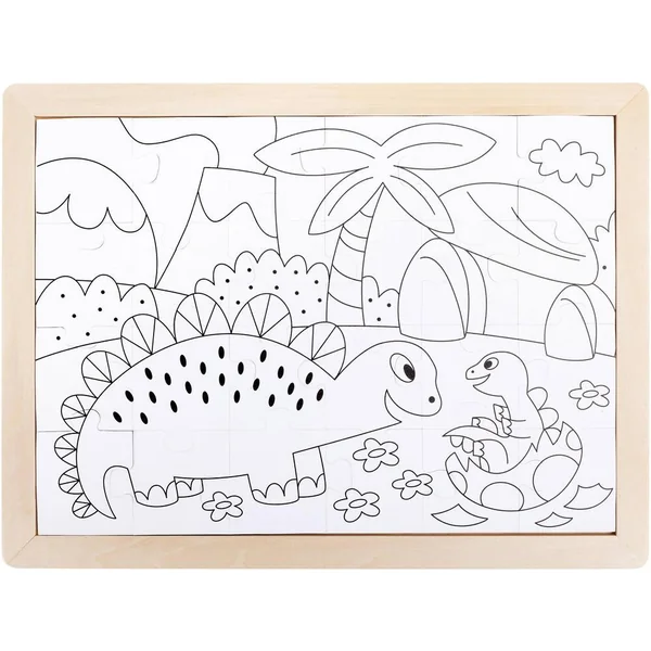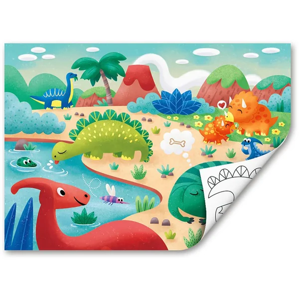 Ce puzzle 2 en 1 est fabriqué en carton et le plateau est en bois contreplaqué. Bienvenue au temps des dinosaures avec ce puzzle de 24 pièces, coloré sur le recto. Amuse-toi à colorier les pièces du puzzle au verso.