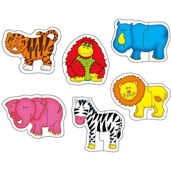 Puzzle pour les tout-petits, qui contient 6 adorables puzzles avec des motifs d’animaux de la jungle.
