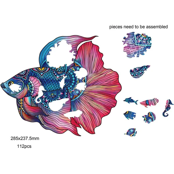 Relevez le défi avec des pièces de puzzle de forme unique. Puzzle en bois de 112 pièces