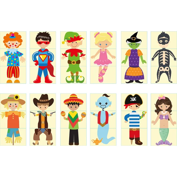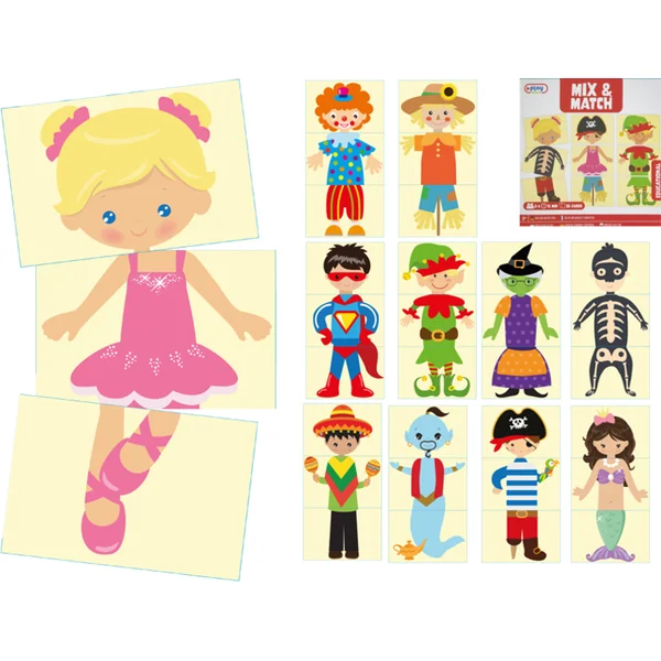 Le puzzle de la drôle de trio contient 36 cartes à partir desquelles vous pouvez créer différents personnages amusants.
