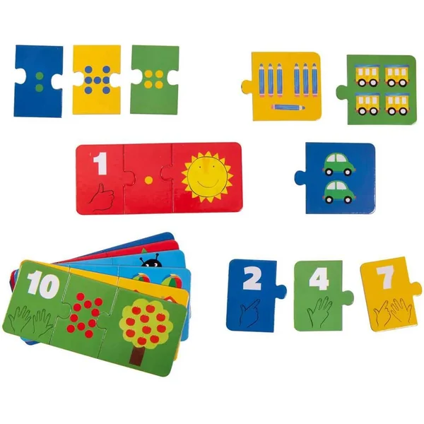 Un ensemble de 10 puzzles pour apprendre les chiffres de 1 à 10 en s’amusant ! A chaque fois, le chiffre, des points et un dessin à associer pour reconstituer un puzzle de 3 pièces.