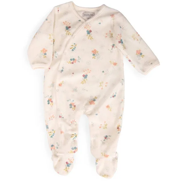 Pyjama et son imprimé fleuri, en velours avec pieds fermés pour garder bébé bien au chaud. Ouverture par boutons-pression sur le devant et à l’entrejambe pour un habillage facile. Tissu certifié OEKO-TEX®.