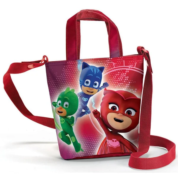 Sac shopping Pyjamasques avec fermeture zippée personnalisée et bandoulière amovible avec un seul compartiment de rangement. Produit imprimé sur les deux côtés avec 2 images différentes pour l’avant et l’arrière. En polyester 420D, panneau avant en satin. Lavage : uniquement en surface ou nettoyage à sec. Ce produit n’est pas un jouet.