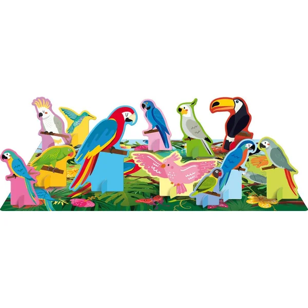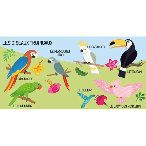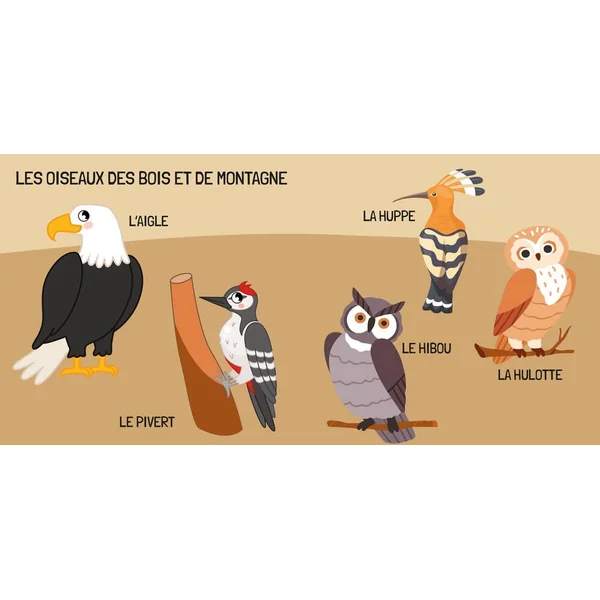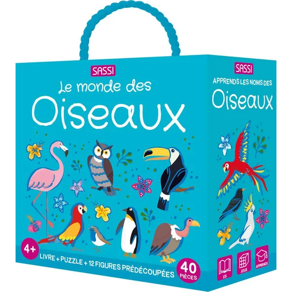 Découvre les oiseaux qui peuplent notre planète ! Feuillette le livre, construis le puzzle et apprends à reconnaître les différents types d’oiseaux, de ceux qui vivent dans le jardin à ceux qui volent dans les montagnes, des oiseaux tropicaux aux oiseaux de la ferme.