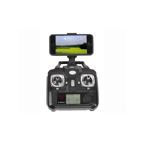 Quadrocoptère Electrique Spyrit FPV T2M référence T5166 Voici enfin la dernière évolution du , ce petit drone d’une envergure de 40cm environ était déjà muni d’une caméra qui filmait et enregistrait sur une micro carte SD. Grosse Nouveauté aujourd’hui, vous aurez la possiblilité de venvoyez l’image filmé de la caméra HD directement sur votre smortphone ou votre tablette en téléchargeant simplement au préalable l’application sur Google Play ou l’Apple Store. Toujours fourni avec une radiocommande, un ainsi que son chargeur, donc nul besoins de rajouter d’autres accessoires pour mettre votre drone en marche.. Fonctionnalité FPV : La vidéo est donc transmise en direct sur votre smatphone ou votre tablette, cette connection se fait par WIFI, un simple réglage entre votre drone et votre appareil sera necessaire afin d’associer les deux. cette fonction est absolument géniale ! c’est comme si d’un coup vous vous retrouvez a bord de notre engin ! la connection est direct et aucun temps de latence n’est à signaler. Bien entendu l’enregistrement de vos prises de vue aérienne se feront directement le » dossier video » de votre smartphone ou table comme si vous étiez en train de filmer ou de prendre une photo La conception de ce nouveau spyrit FPV est légèrement différente de son prédécesseur, d’un point de vue général ormis le mode FPV seul le train d’atterrissage a été modifié et surélevé de quelques centimètres afin de protéger la camera. En résumé ! La Structure principale du spyrit FPV est en résine ABS légère et résistante aux chocs ! 2 modes de vol possible : – Mode débutant : – Mode expert : Fonction en mode expert ou débutant :
