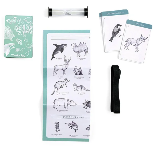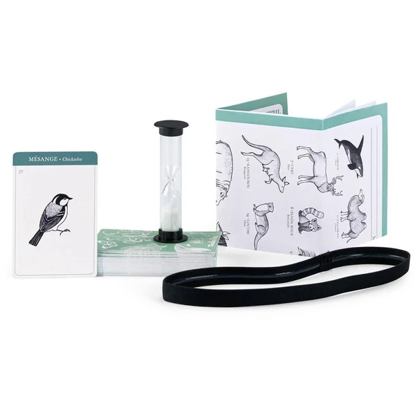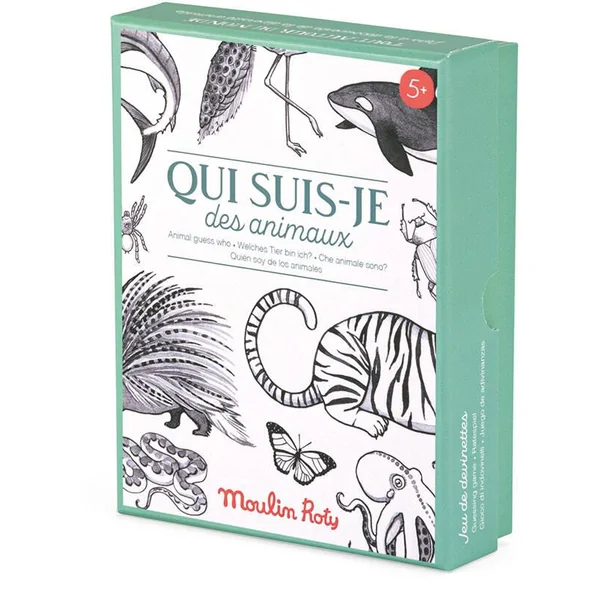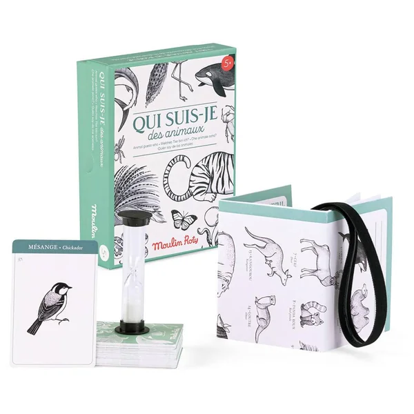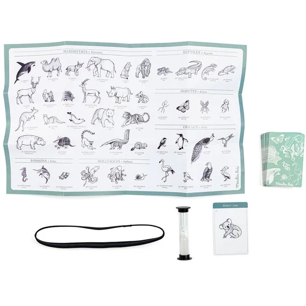 Apprends à reconnaître les animaux en t’amusant ! Tire une carte animal et pose des questions pour deviner qui il est, avant la fin du sablier ! Les images contrastées en noir et blanc aideront l’enfant à se focaliser sur lesdétails (rayures, taches…).