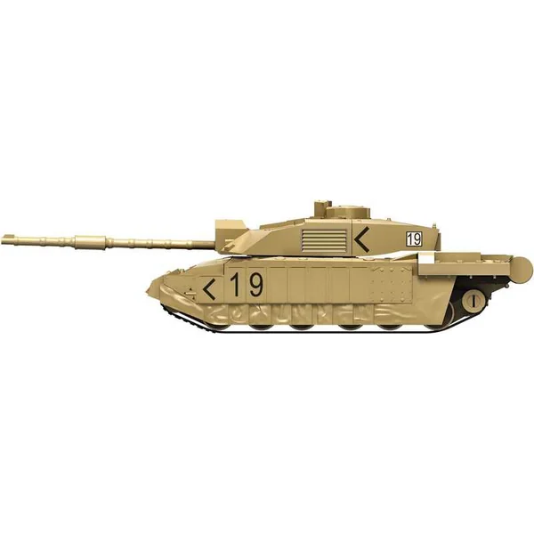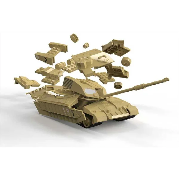 Modèle de tank à emboîter. Taille : 21,7 cm. L’emballage contient 35 pièces déjà peintes pour assembler le modèle.