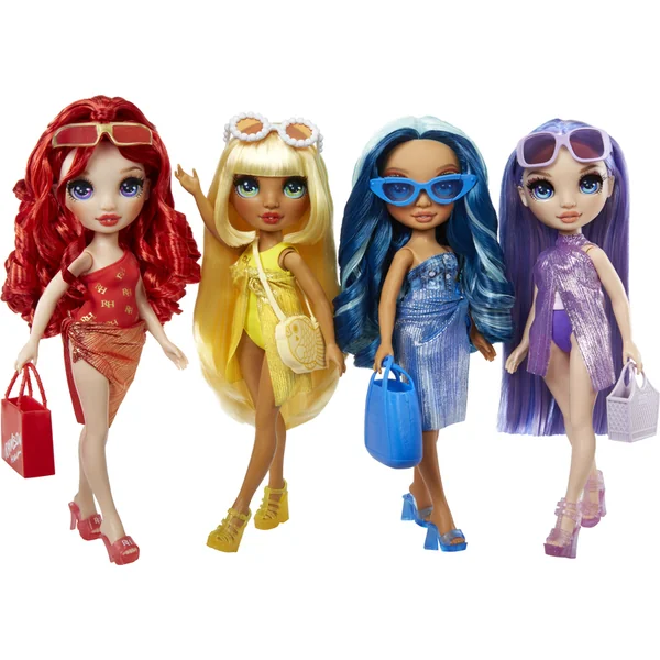 Les couleurs de l’arc-en-ciel sont infinies et brillent le mieux en été. 4 poupées Fashion préférées se montrent maintenant en maillots de bain. Les poupées ont à nouveau de magnifiques cheveux longs et coiffables et de longs cils. Dans l’emballage, tu trouveras de nombreux accessoires et un foulard avec lequel tu peux créer plus de 10 looks.