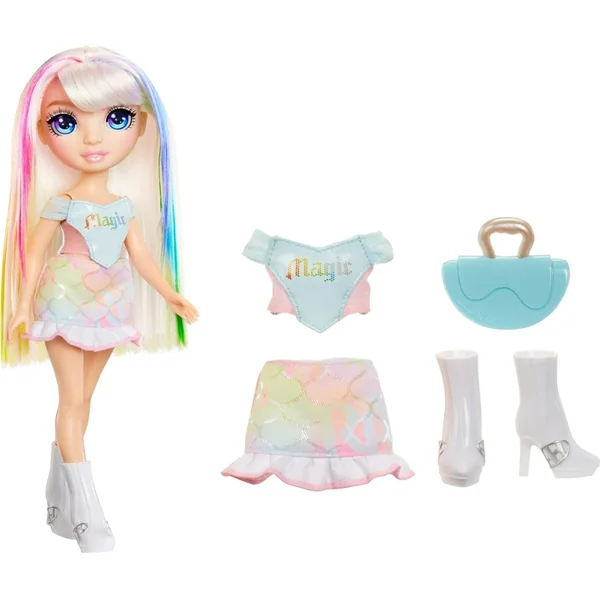 À l’école secondaire Rainbow High, le style est avant tout une question d’expression de soi. Mon style de mode combine nos quatre poupées les plus emblématiques : Bella, Sunny, Violet et Amaya, chacune ayant un look ludique et distinctif dans des couleurs accrocheuses.