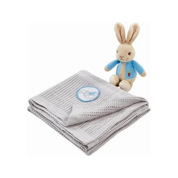 L’emballage cadeau contient une couverture et un lapin en peluche Peter du livre de Beatrix Potter.