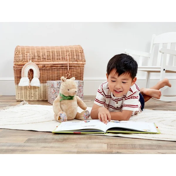 Créez une amitié qui durera toute une vie. Cet adorable ours en peluche est le compagnon idéal pour un bébé. Un classique des peluches qui donne vie aux histoires fantaisistes d’A. A. Milne de la Forêt des Rêves Bleus. L’ours porte une écharpe verte stylée nouée autour du cou et ses pattes présentent un joli motif inspiré de la forêt.