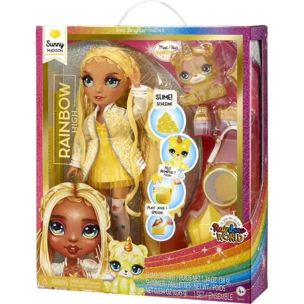 Créez et jouez avec votre nouvel animal magique et votre poupée mannequin aux accessoires personnalisés dans un monde magique. Les enfants adoreront créer leurs propres histoires dans le Rainbow World, tel qu’il apparaît dans la série animée à succès. L’ensemble constitue un cadeau idéal : il comprend une poupée, un animal de compagnie et un kit de slime pour inspirer la créativité et l’imagination.REGARDEZ SUR YOUTUBE et NETFLIX.Regardez les nouveaux épisodes de la série animée sur YouTube. Et rattrapez le début sur Netflix. Il suffit de rechercher « Rainbow High » jaune.