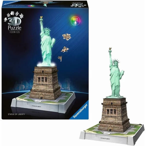Depuis 1886, la Statue de la Liberté accueille tous les immigrants dans le port de New York et symbolise de manière impressionnante l’espoir et la liberté. Ramenez chez vous le célèbre monument new-yorkais, la Statue de la Liberté, avec ce puzzle 3D de Ravensburger. La réplique détaillée de la statue en plastique transparent brille même la nuit grâce à la lumière LED fournie (piles non incluses).