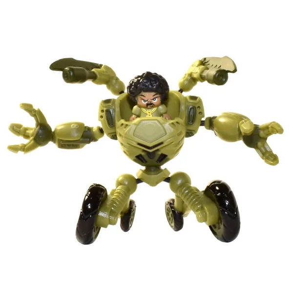 Séparée en 4 niveaux, cette capsule est pleine de surprises : cockpit du robot, accessoire pour construire ton robot, armes pour ton robot et un bouton vert… Mais que cache-t-il ? Appuie dessus pour découvrir la dernière surprise ! Génial, une petite capsule de Slime surgit, dans lequel est caché le personnage. Construis ton robot avec tous les accessoires et installe ton personnage dedans ! Tu est prêt pour le combat ! Tu peux même interchanger les parties pour créer tes propres robots ! Modèle selon disponibilité. Vendu à l’unité.
