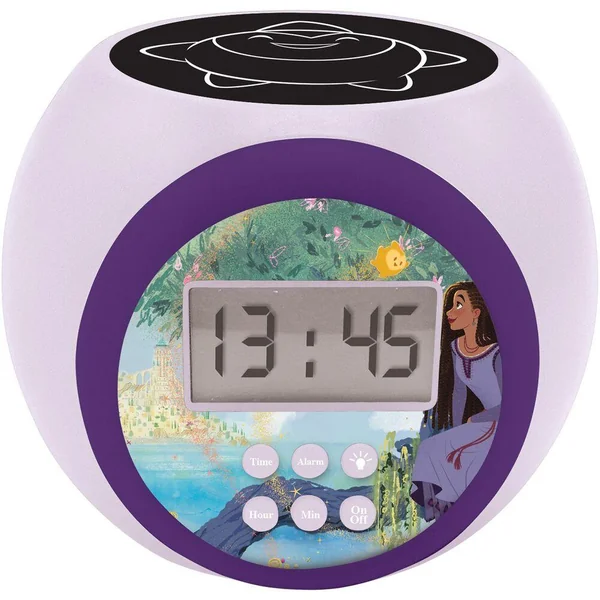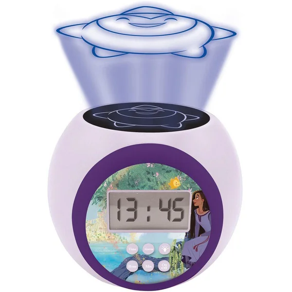 Réveil projecteur pour enfant avec écran LCD avec rétro éclairage bleu. Veilleuse avec projection d’une étoile au plafond en 3 couleurs pour créer une atmosphère incroyable la nuit ! Avec auto-extinction (5/10/15 mn). Alarme avec fonction retardateur (snooze), pour se réveiller en douceur. Très intuitif avec des réglages faciles, des boutons larges pour les enfants à utiliser à tout moment Alimentation : 3 piles AAA / LR03 (non incluses).