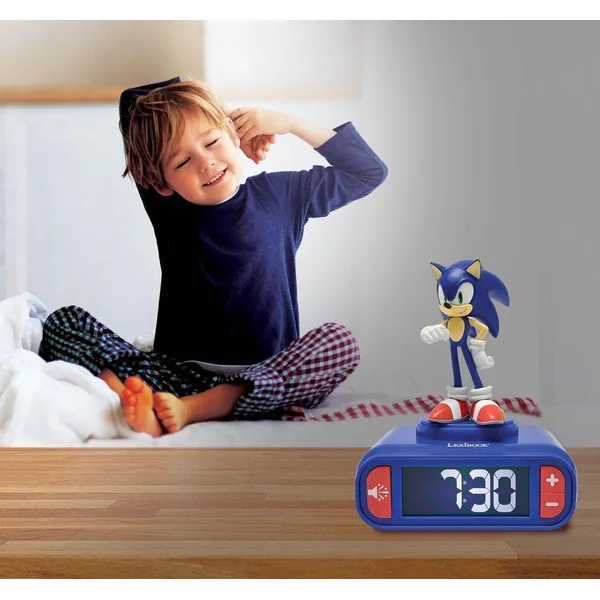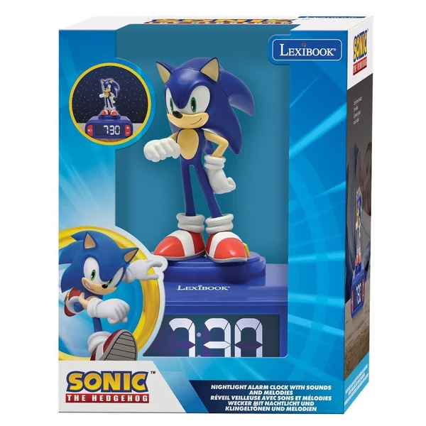 Magnifique reveil veilleuse sonic avec effets sonores rythmez vos reveils au son des 6 sonneries de ce reveil couple d une fonction veilleuse dont le design sonic enjolivera vos nuits ecran lcd avec retro eclairage temporaire bouton pour declencher des effets sonores alarme avec choix de sonneries inspirees du monde de sonic appuyez sur le dessus du reveil pour eteindre l alarme ou allumer la balle et l ecran fonction snooze indicateur de piles faibles.