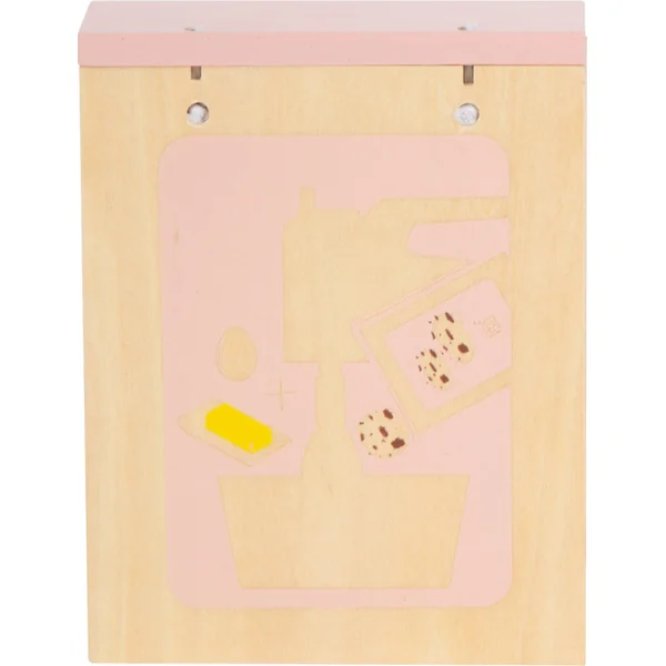 Selon la recette illustrée dans la boîte, vous pouvez cuire vos propres délices. De plus, dans l’emballage, vous trouverez également des biscuits en tissu, du beurre en bois, des œufs en velcro, un bol, un rouleau à pâtisserie, une spatule, une plaque de cuisson.