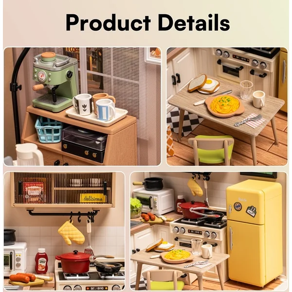 Découvrez le monde des miniatures détaillées Robotime sous forme de kits de construction uniques. En les assemblant, vous passerez des moments agréables et le résultat pourra embellir les recoins de votre chambre. Chaque kit est livré démonté. Dans l’emballage, avec toutes les pièces et un manuel détaillé, vous trouverez de la colle et d’autres outils. En général, vous pouvez vous contenter de ciseaux ordinaires que vous trouverez sûrement chez vous pour l’assemblage et les ajustements.