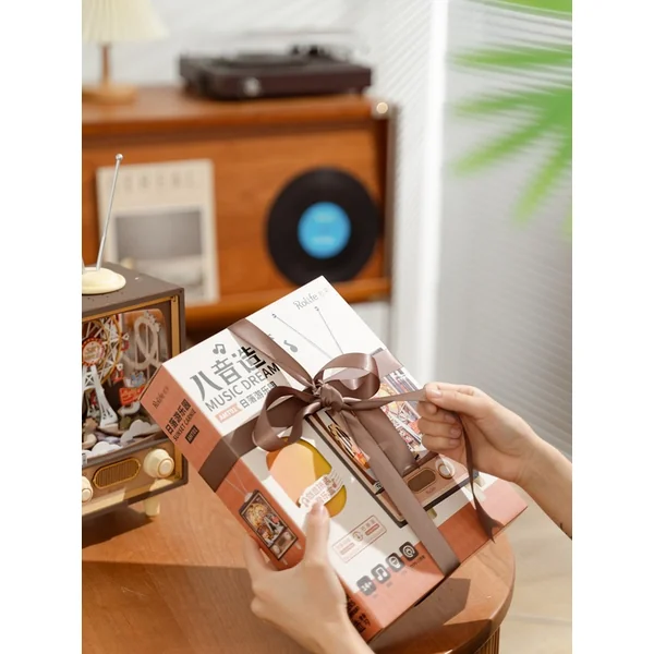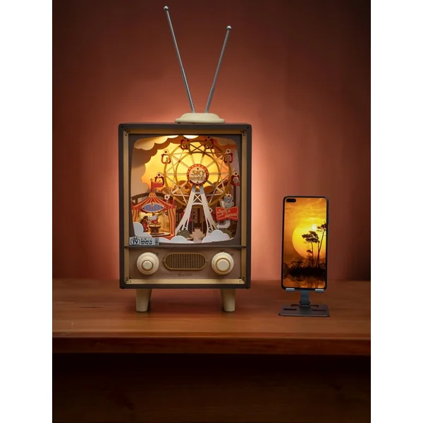 Cette boîte à musique créative sur le thème du parc d’attractions (AMT01), qui utilise la télévision comme cadre pour créer une scène féerique, n’est pas seulement un jouet, mais aussi une belle pièce artisanale qui embellira votre salon ou la chambre d’un enfant. Lorsque la grande roue tourne, vous vous sentirez comme dans un véritable parc d’attractions. Vous observerez des moments de joie et d’excitation lorsque le petit Monsieur Lapin commencera à jouer de la trompette et que le mignon Monsieur Ours apparaîtra sur la roue.