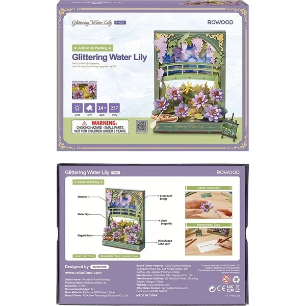 La scène assemblée peut être utilisée comme veilleuse, accessoire pour une bibliothèque ou cadeau original pour quiconque aime l’art et la création. Le puzzle 3D est un excellent moyen de profiter d’un jeu créatif et éducatif tout en créant un magnifique modèle de fleurs, qui peut devenir un cadeau original ou une décoration pour votre maison ou votre bureau.