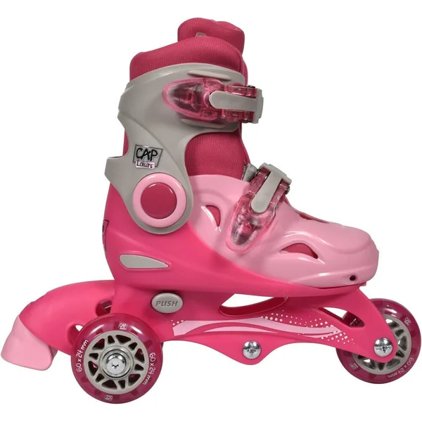 Découvrez les Rollers évolutifs 3 roues de Cap, un choix parfait pour les jeunes amateurs de jeux extérieurs et de sports, dès 6 ans. Ces rollers, aux couleurs roses attrayantes, sont conçus pour accompagner les enfants dans leur apprentissage avec un design évolutif qui permet de passer facilement du mode débutant quad à la version en ligne grâce à un bouton poussoir.