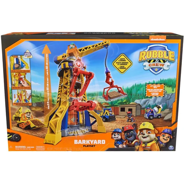 Un univers de jeu de plus de 60 cm de haut pour des heures de jeu à construire et démolir. Avec un ascenseur pour emmener Ruben tout en haut de la grue et lancer des missions construction. Le Playset Brico Park inclut 340 grammes de sable Kinetic Sand et 10 accessoires pour mouler et sculpter ses créations grâce à la presse incluse dans la grue. Avec effets sonores et lumineux. Un véhicule de Ruben d’environ 15 cm de long et sa figurine amovible fournis.