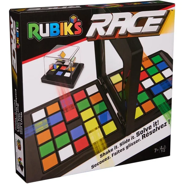Contenu du produit : 1 plateau Rubik’s Race, 48 dalles colorées, 1 mélangeur transparent et les règles du jeu