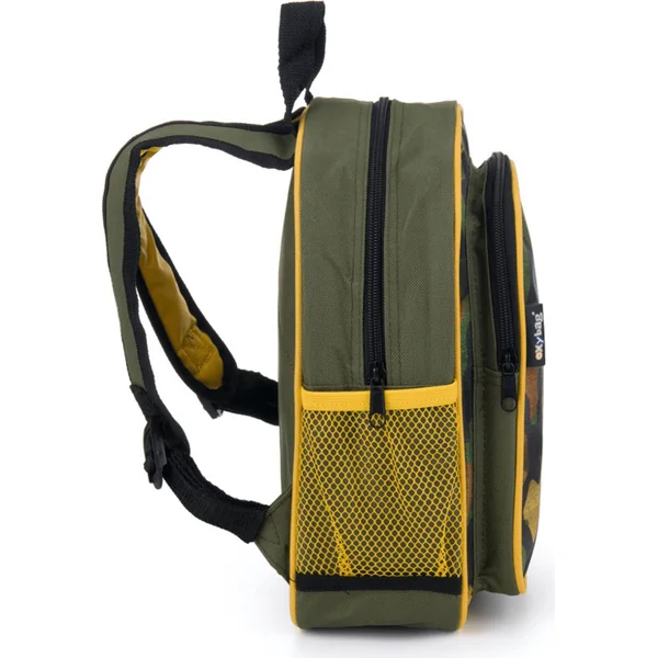 - Il a une grande poche, une petite poche pour le goûter et des poches latérales pour une bouteille d’eau.