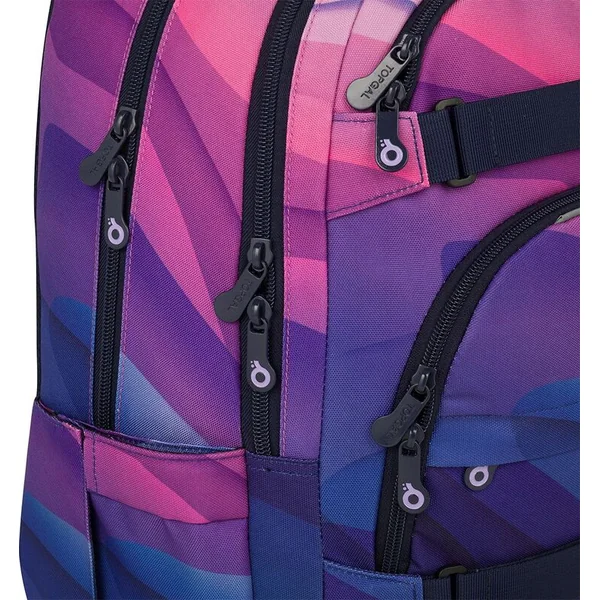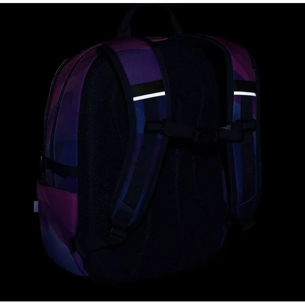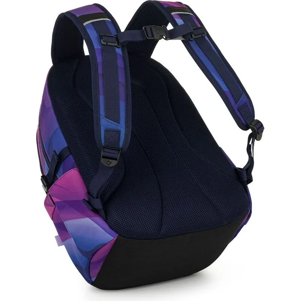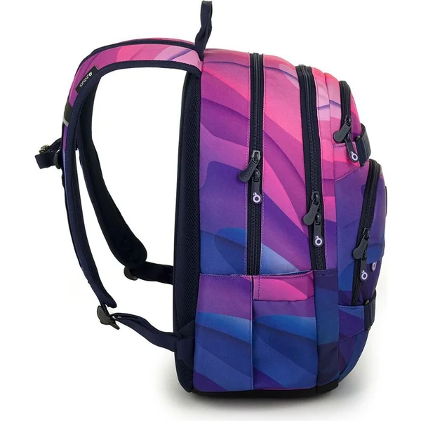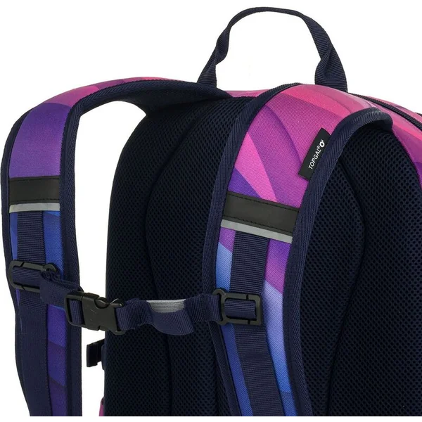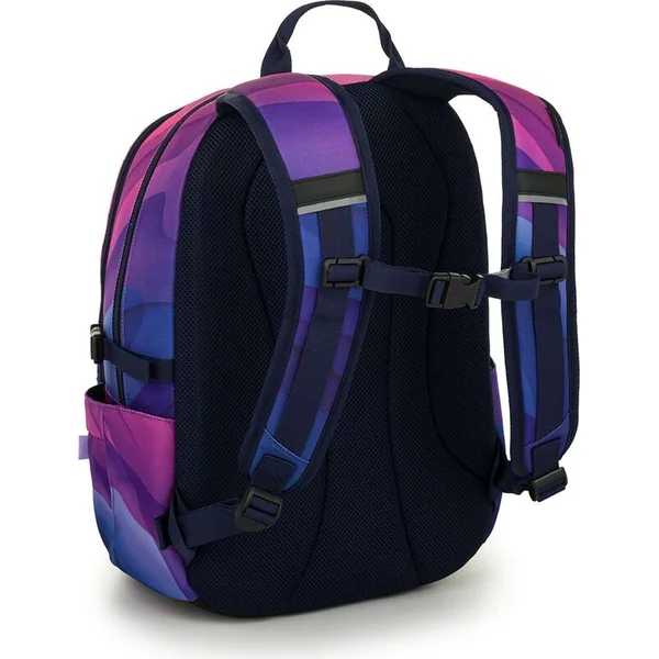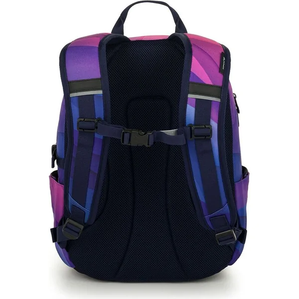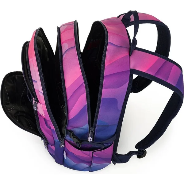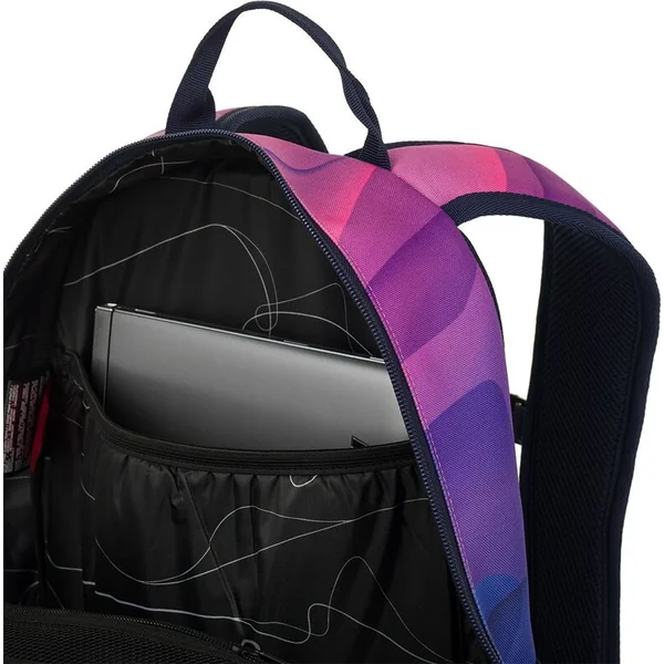 Un sac à dos à deux compartiments avec un patch stylé dans une combinaison de couleurs rose-violet populaire. Le dos est rembourré et anatomiquement conçu en mousse douce. Dans le compartiment arrière se trouve une poche rembourrée pour ordinateur portable et une poche en filet pratique avec fermeture éclair. Dans le compartiment avant, vous trouverez un mousqueton pour les clés.