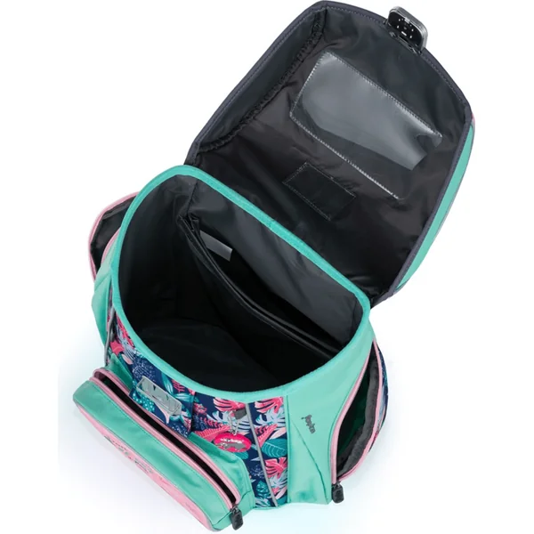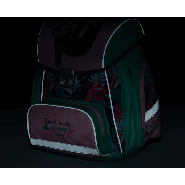 - La poche avant est destinée au goûter, et elle est dotée de plusieurs éléments réfléchissants qui rendent le cartable plus visible.