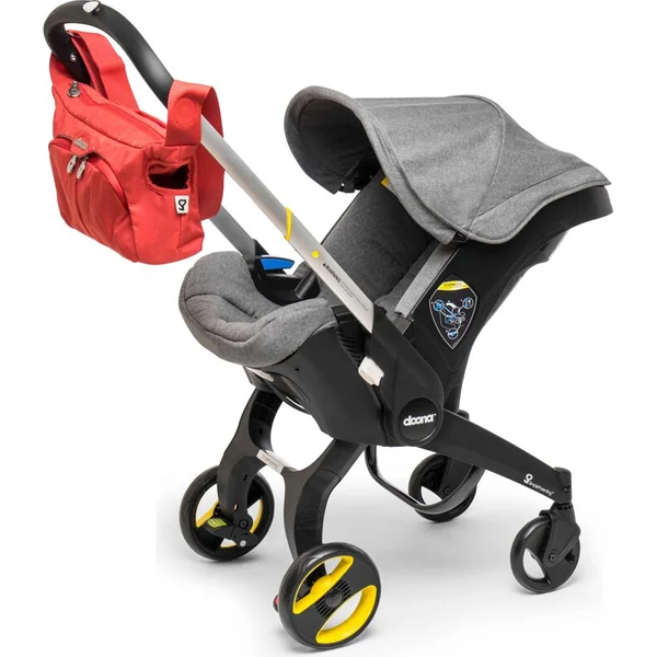 Grâce à un système innovant de connecteurs à libération rapide, ce sac peut être facilement fixé à la poignée du Doona Plus, et comme le sac a été testé et certifié avec le siège auto Doona Plus, il peut être utilisé sans crainte de basculement ou de perte de stabilité.