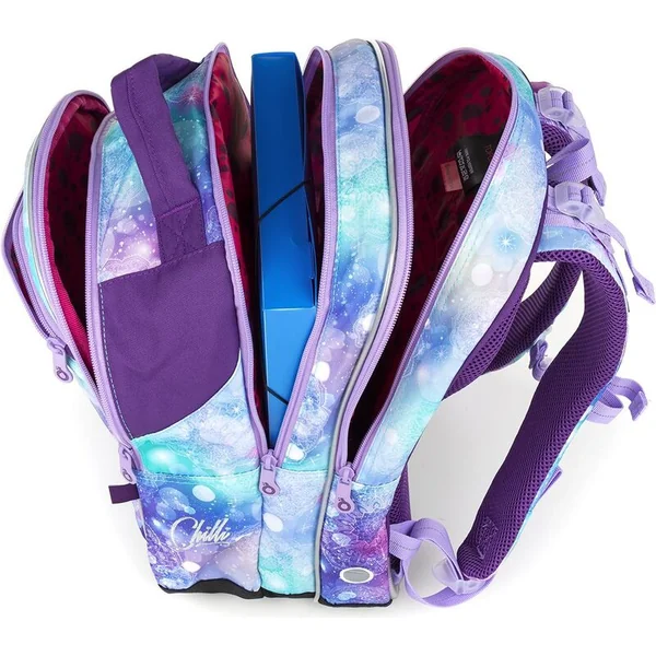 Notre coupe de sac la plus polyvalente est habillée de nuances de bleu et de violet, et complétée par une broderie argentée, des papillons et des paillettes. Alors, qu’en pensez-vous? Toutes les petites princesses diront certainement oui! Les petites filles de première classe apprécieront cette coupe, mais aussi les écolières des classes supérieures de l’école primaire.